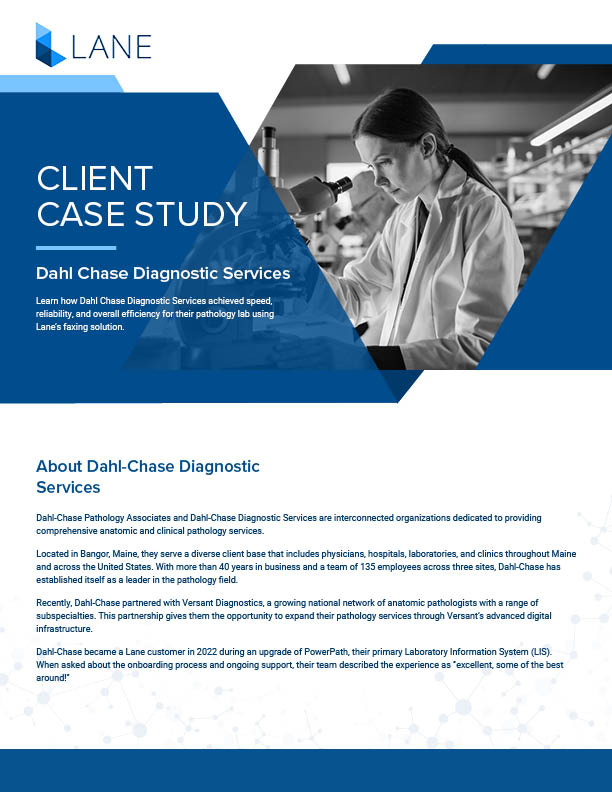 Learn how Dahl Chase Diagnostic Services achieved speed, reliability, and overall efficiency for their pathology lab using Lane’s faxing solution.